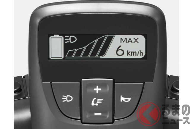 最高速度は1km/hから6km/hに設定が可能。誰か歩く人と一緒に走行する際は遅くするなど状況に合わせて切り替えることが可能となっています。