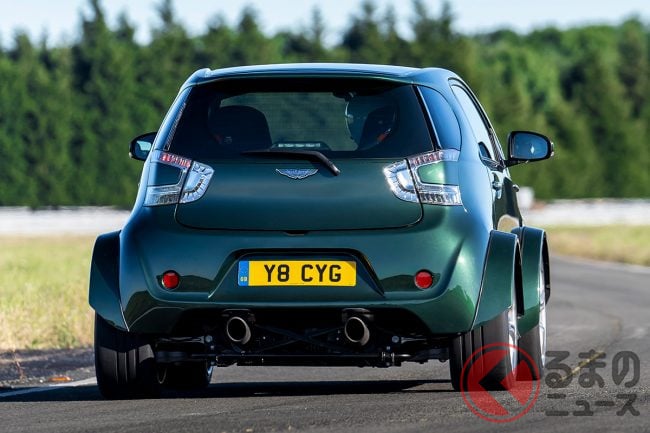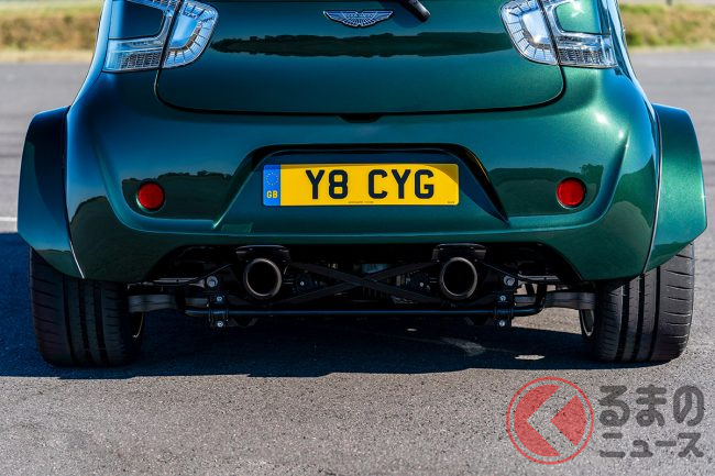 最大の特徴は、きわめて小さなボディです。ボディサイズは全長3078mm×全幅1680mm×全高1500mm。わずか3m程度の車体ですが、随所にアストンマーティンらしい要素を散りばめています。