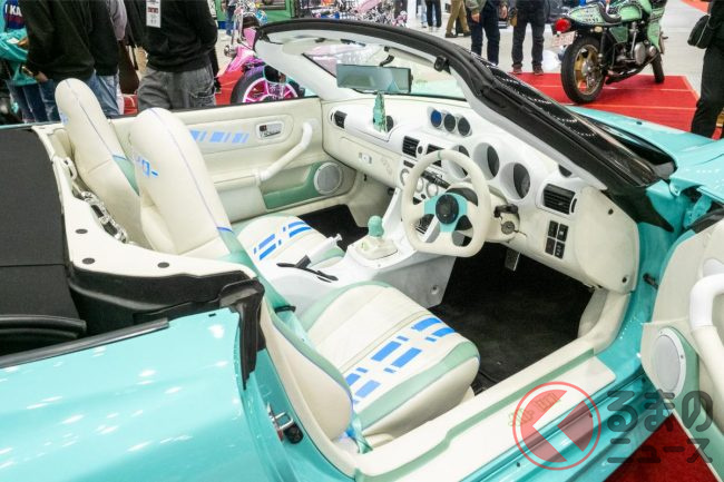 今回、名古屋オートフェスティバル2025に登場したカスタムカーは、そんなMR-Sを内外装共に鮮やかにカスタム。ドイツの高級車「ポルシェ」のような雰囲気をもたせています。
