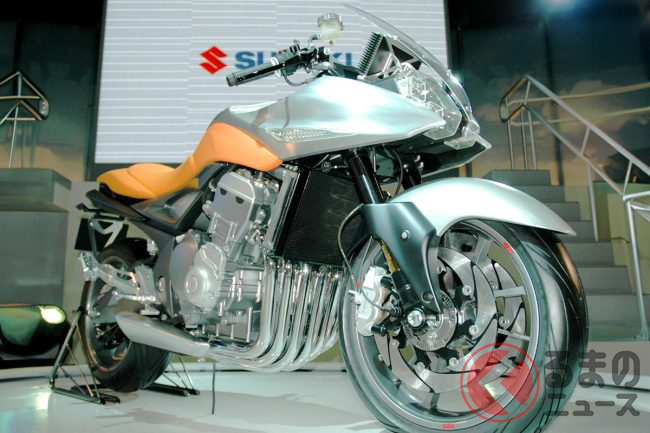 当時スズキの二輪フラッグシップといえば1999年発売の「GSX1300R『隼』」が世界最速マシンとして君臨していましたが、突如発表されたこの6気筒コンセプトは「次世代の隼」あるいは伝説的名車「カタナ」の再来になるのではと国内外で大きな注目を集めました。