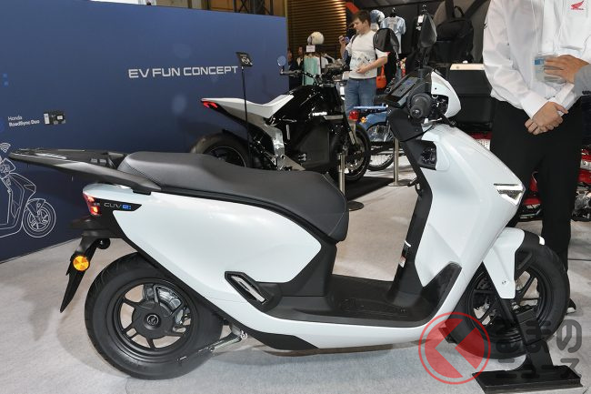 約20万円! ホンダ新型「CUV e:」に反響多数! “充電待ちゼロ”の「給油より速いバッテリー交換」が話題に! 実車展示もある注目の「“原付2種”電動スクーター」とは