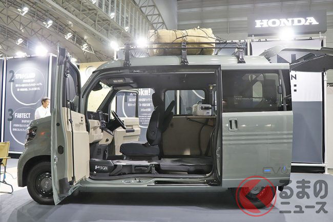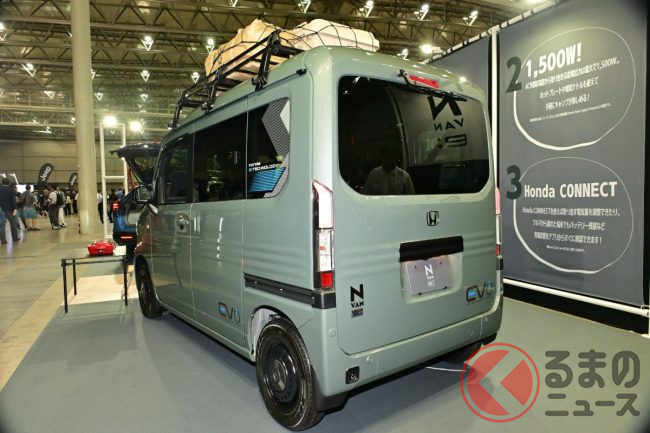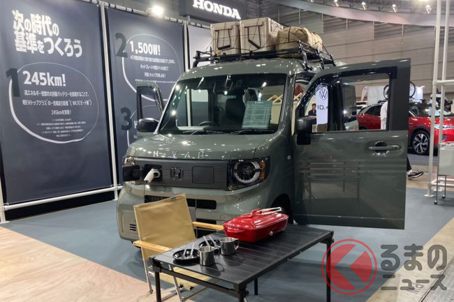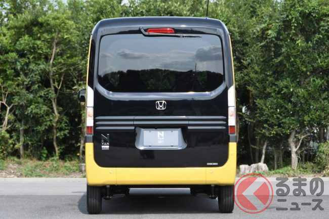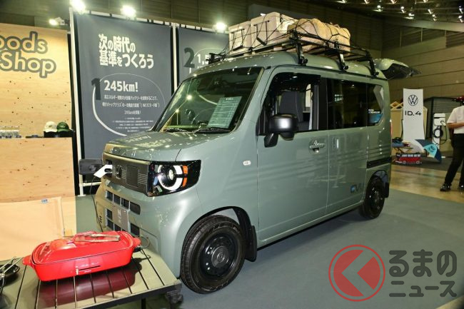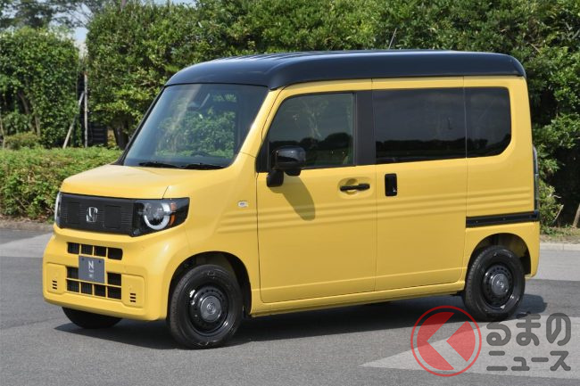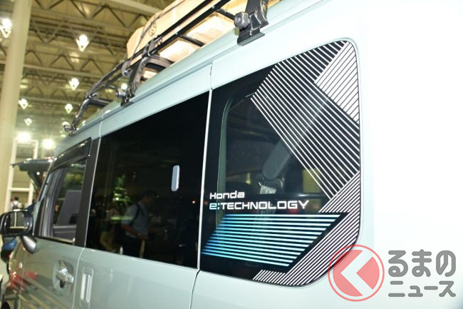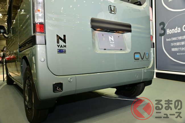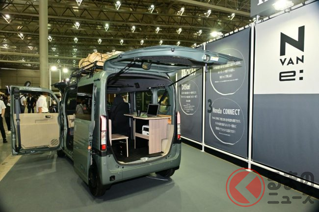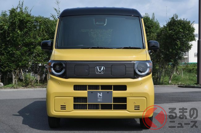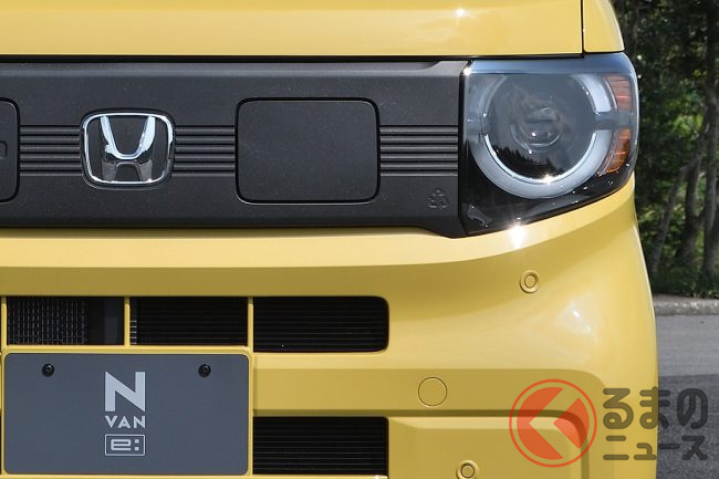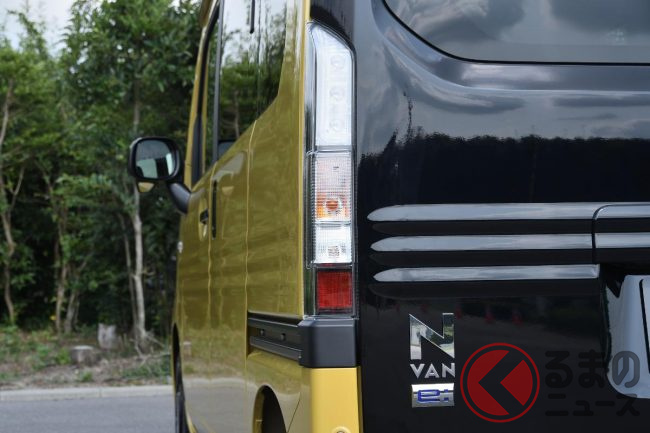 ホンダ「新型軽バン」の斬新「“黒すぎ”ボンネット」が凄い! 「商用モデル」らしからぬめちゃ精悍デザインに大変身! “日常使い”もOKな新型「N-VAN e:」純正アクセに注目!