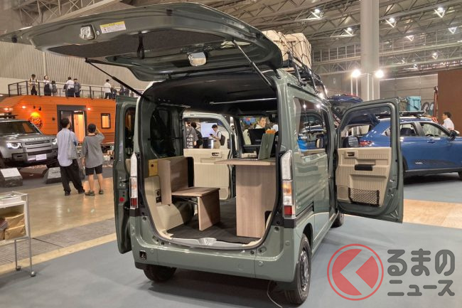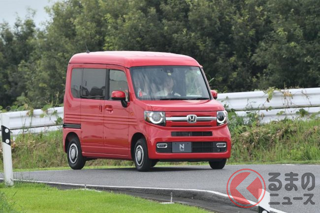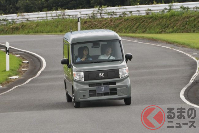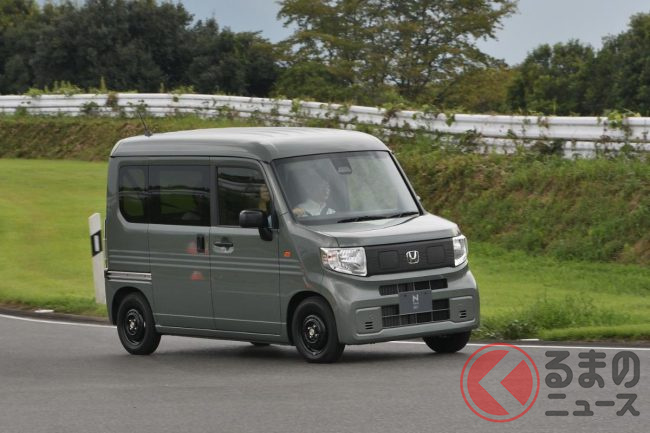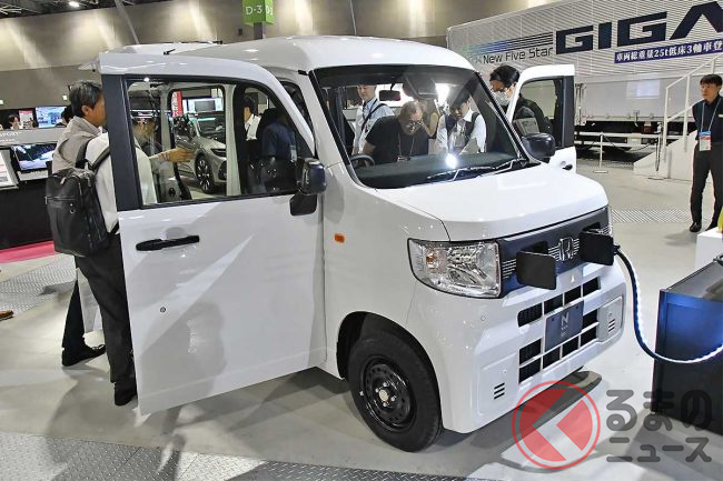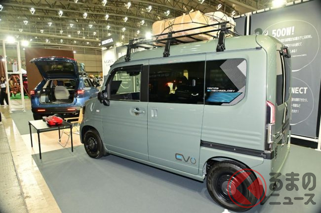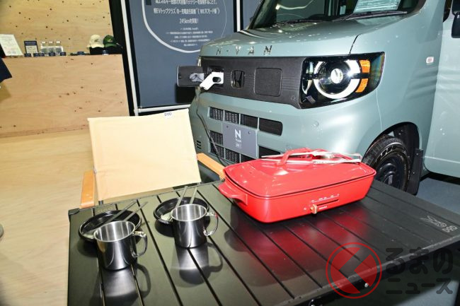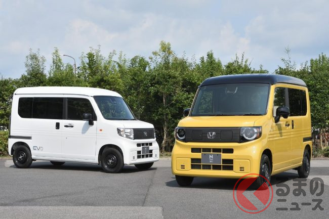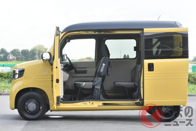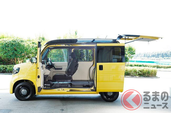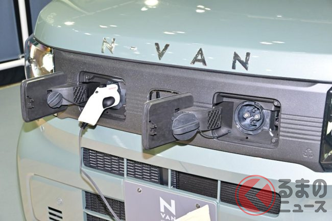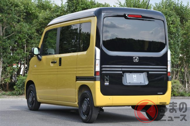 ホンダ「新型軽バン」の斬新「“黒すぎ”ボンネット」が凄い! 「商用モデル」らしからぬめちゃ精悍デザインに大変身! “日常使い”もOKな新型「N-VAN e:」純正アクセに注目!