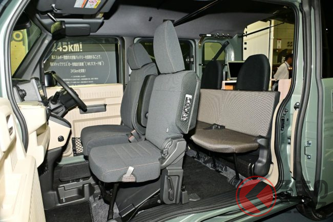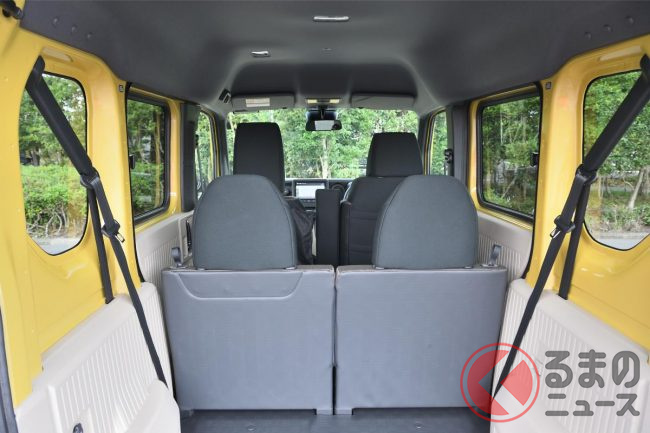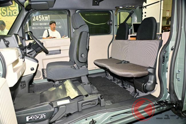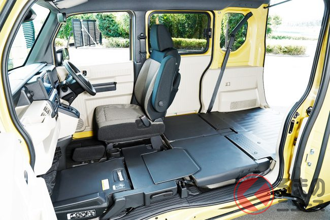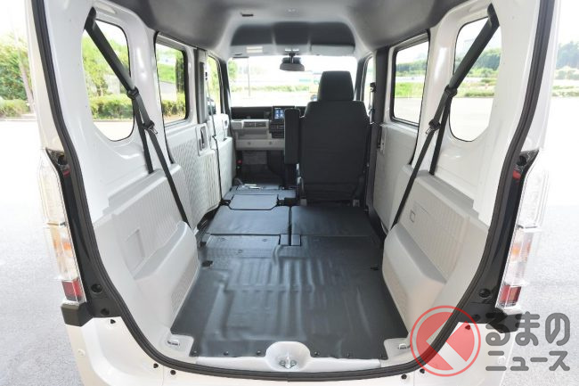 パワーユニット自体を小型化したことや、薄型バッテリーの採用、高電圧部品の集中配置により、N-VANと変わらない荷室空間を確保しています。