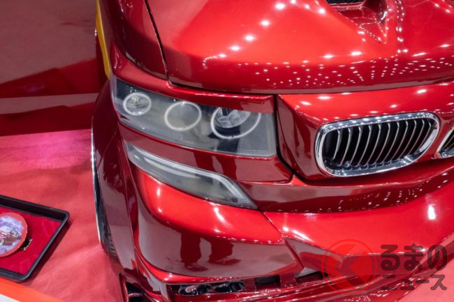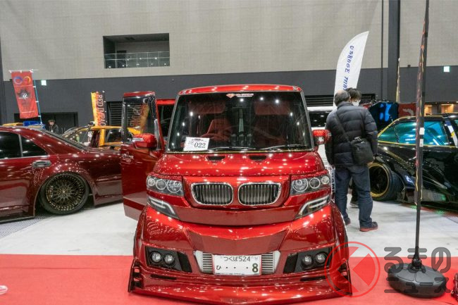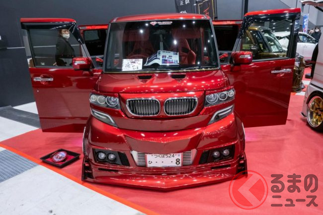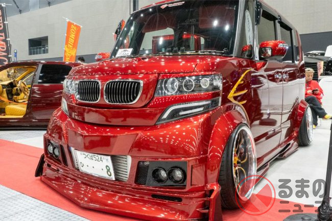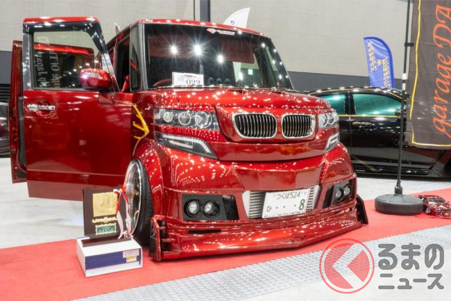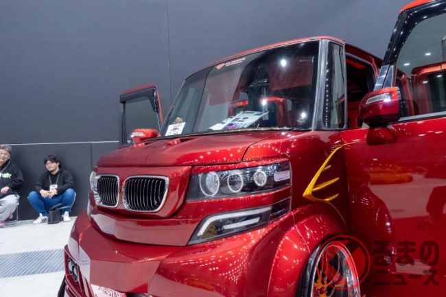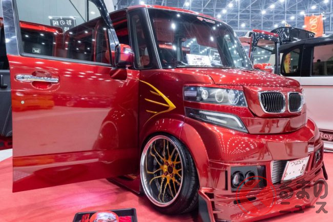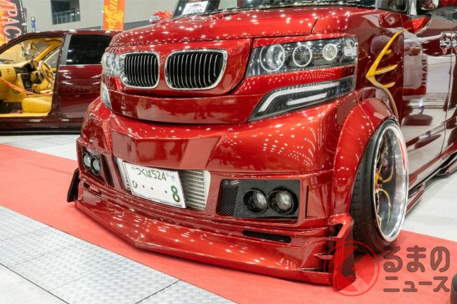 ホンダの初代「N-BOX カスタム」を改造し、BMW風のフロントグリルを取り付けたカスタムカーが「名古屋オートフェスティバル2025」に登場しました。その変貌ぶりに注目してください。