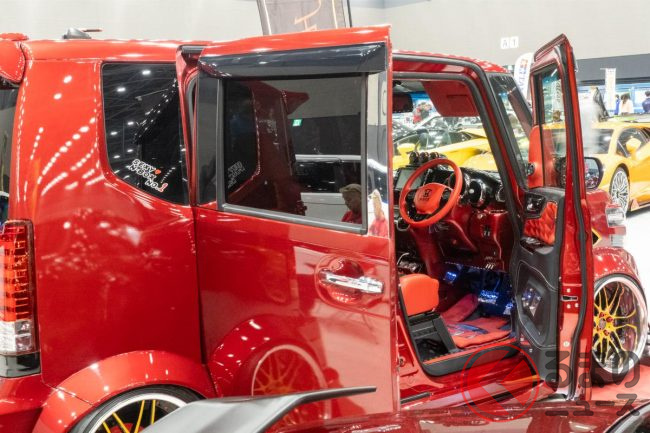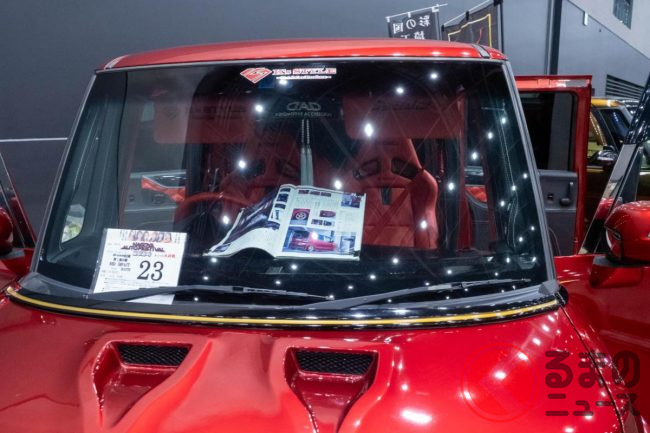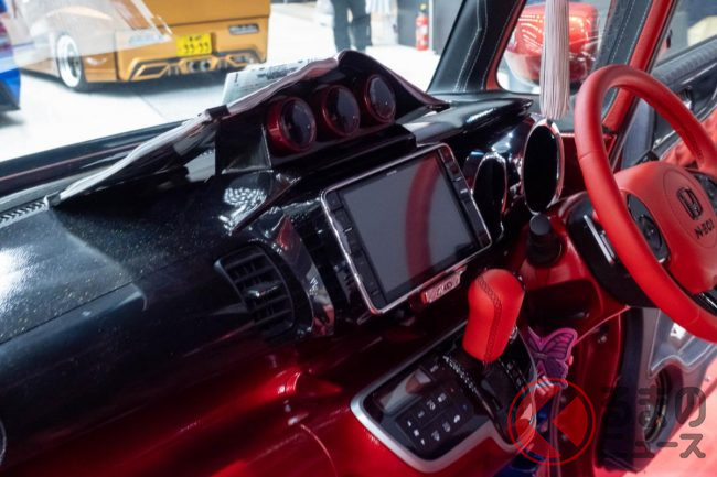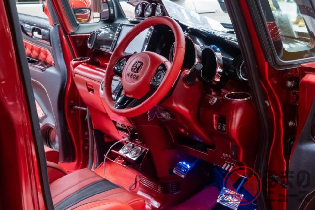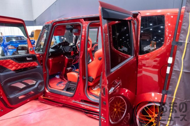外装から室内まで、“赤”に仕上げたN-BOX カスタム。その激しいカスタマイズには、来場者の多くが注目していました。