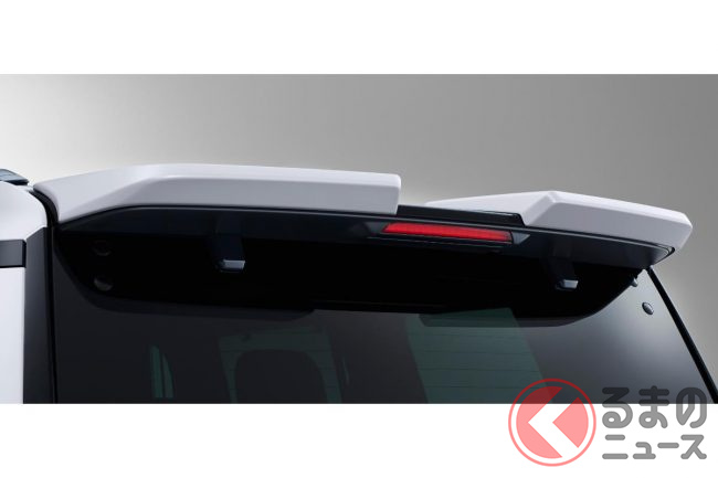 「フロントスポイラー」と「リヤスカート」はセンターを強調する分割形状が特徴とし、さらに「リヤスポイラー」にも同様の分割形状を用いることで、連続性とワイド感、タフさを強調したリヤビューを創出します。
