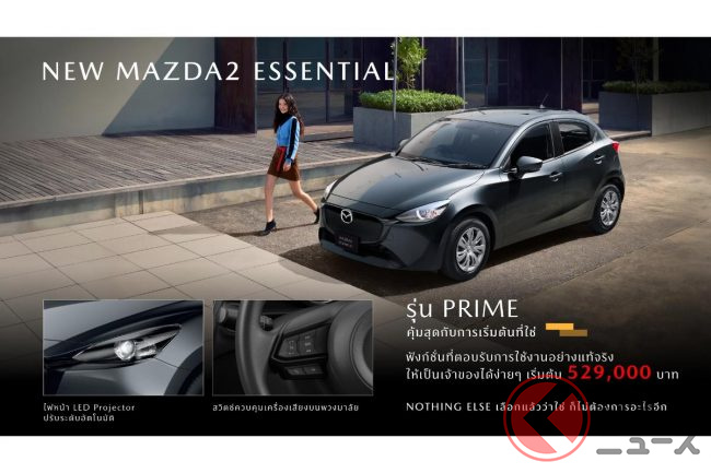 マツダ「新マツダ2」発表! 約230万円の「エッセンシャル」! 全長4m級&ディーゼルエンジンも用意の「コンパクトモデル」泰国に登場