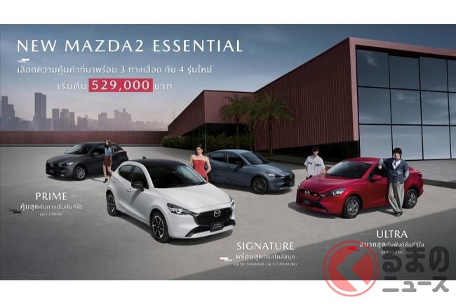 マツダのタイ法人は2025年3月24日、コンパクトモデル「マツダ2」の新たな改良モデルを発表。今回の改良では、グレードを見直すとともに車名を「マツダ2エッセンシャル」に変更しています。