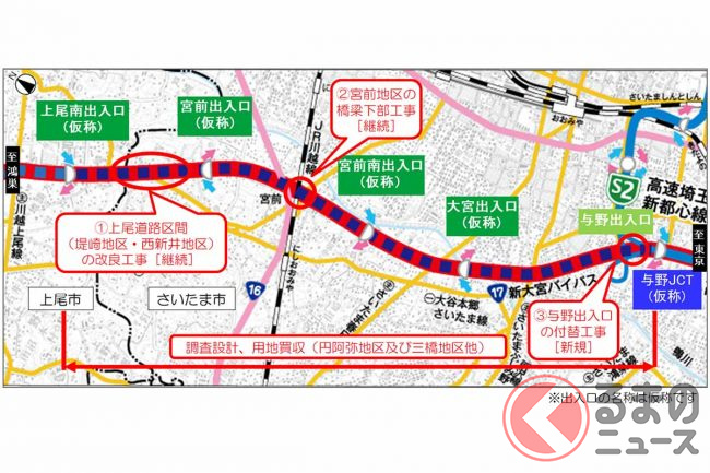 この有料道路プロジェクトは「新大宮上尾道路」と呼ばれています。首都高が事業を担っています。