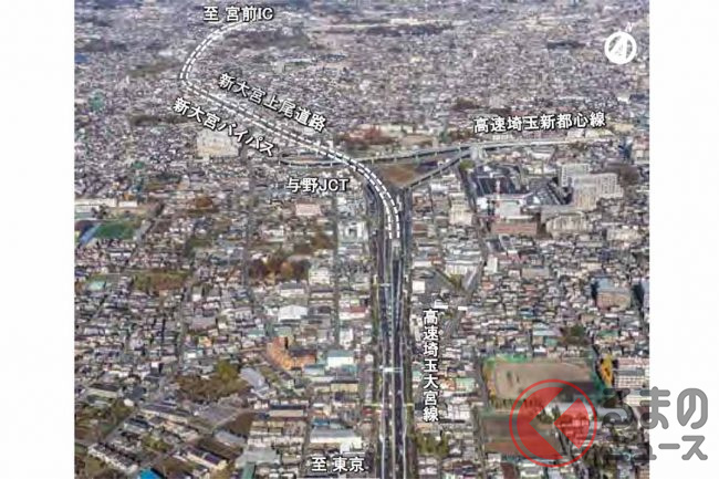 将来は群馬県へ!?「首都高上尾線」工事進行中 すでに「高架ニョキニョキ」状態!? 新大宮バイパスの“信号ゼロ”高架部が作業順調