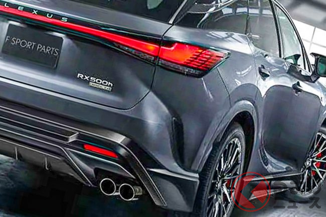 レクサス新「RX」がスゴイ! 斬新「スピンドルボディ」に4本出しマフラー&精悍エアロがよく似合う! 713万円の「F SPORT」設定のエアロダイナミクスPとは