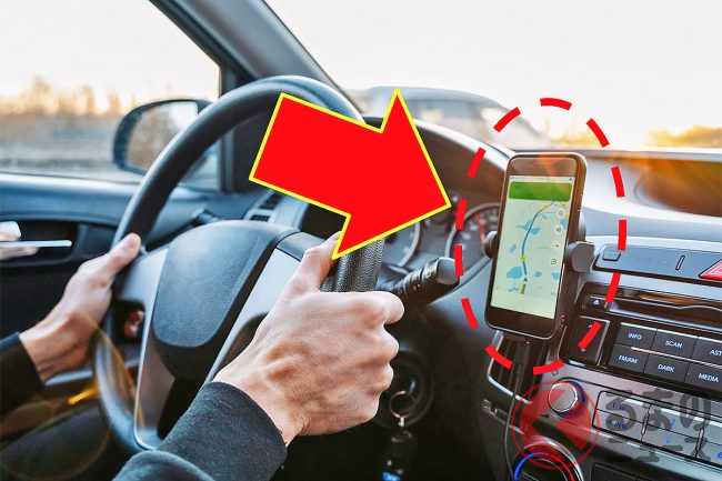 大型ディスプレイを搭載した車載のディスプレイオーディオやカーナビゲーションシステムなどに接続しない場合、スマホの画面がそのままカーナビ代わりとなるわけで、必然的に運転中でも見やすい場所に設置することになります。