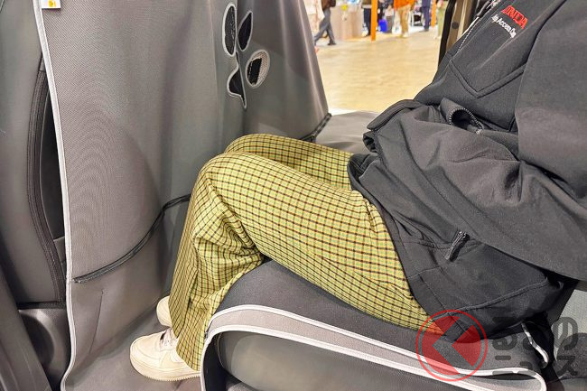 フリード e:HEVクロスターには「わんこにやさしいHonda車」をテーマに、愛犬が乗る際のシートの汚れを防ぐ「ペットシートサークル」や「ペットシートマット」、助手席に小型犬を安心して乗せられるソフトケージ「ペットシートプラスわん2」などが装着されていました。