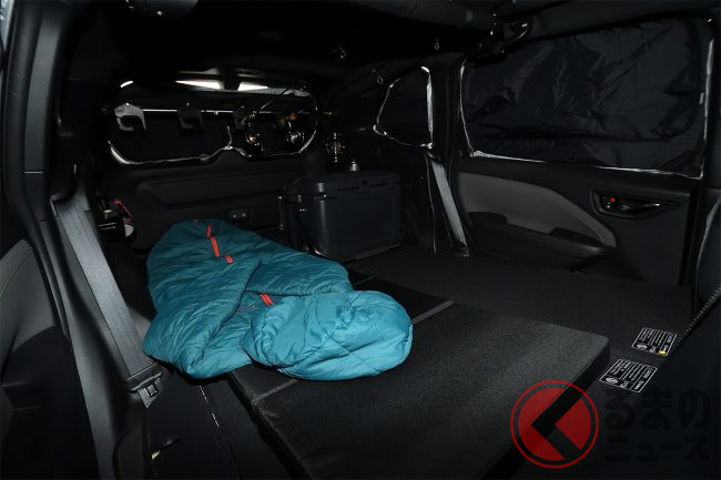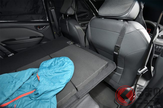 スバル新型「フォレスター」車中泊仕様が登場!? 真っ暗車内×フルフラット荷室でめちゃ快適に寝られる! 「スゴいアクセサリー」新設定!