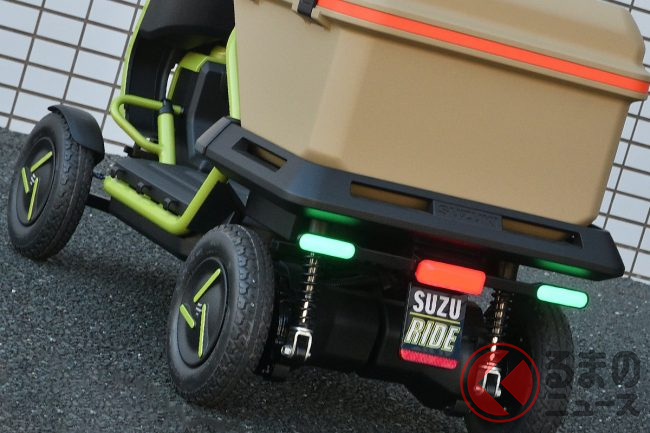 全長わずか1.3m! スズキの「めちゃ小さい乗り物」がスゴい! 高齢者にちょうどいい!? 免許無し&ノーヘルで運転できる“おひとり様モデル”「SUZU-RIDE」市販化へ