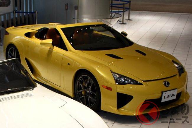 レクサス斬新「スーパーカー」公開に反響殺到!「4.8リッターV型10気筒エンジンは国宝!」「めちゃカッコいい…」の声も! 完全オープンルーフの「LFAスパイダー」登場へ!