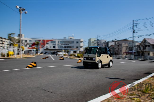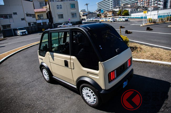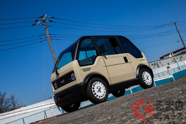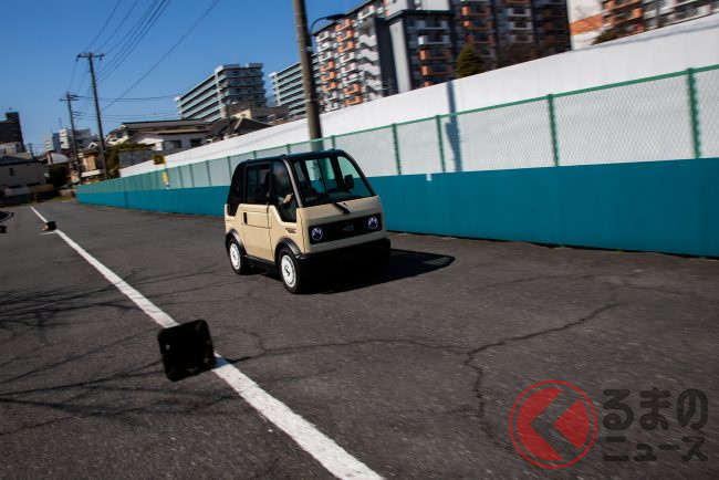 110万円で買える「軽より小さな1人乗りハコ車」 カクカクデザイン×丸目ライト採用でバイクに近い乗り味!? KGモータース「ミボット」 印象は?