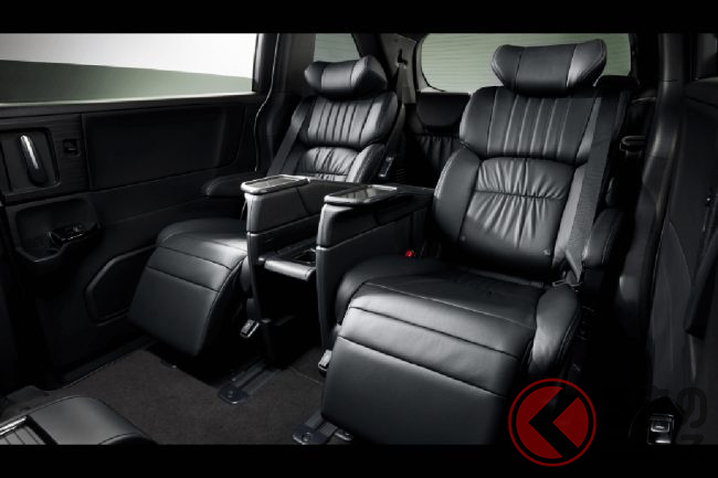 リアシートにはオットマン等を備えた豪華な「プレミアムクレードルシート」を装備し、長距離ドライブでの快適性を高めていました。