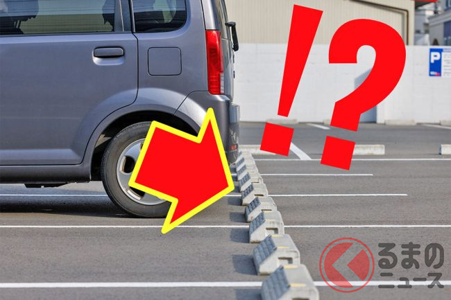 車止めに「ドカン」! タイヤ“ブチ当て”駐車 やりがちだけど「NG」ってホント? 知らずに続けると大変なことに… 大胆不敵な「激しい駐車」がクルマに悪影響を与えるワケ