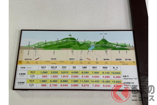 ここでは、鉄道、ケーブルカー、バス、ロープウェイなどの乗り物を乗り継いで移動することが特徴です。