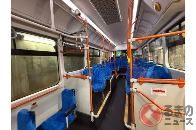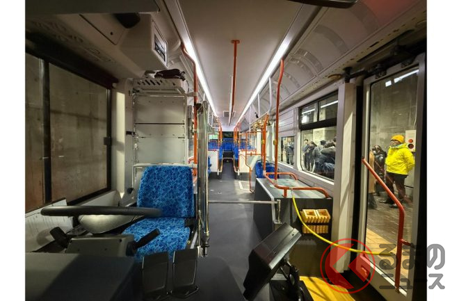 車内は街で見かける路線バスと同じように座席が並び、降車ボタンもそのまま。また全席にUSBポートが備わるなど使い勝手にも配慮されていました。
