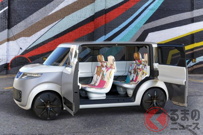 日産「次期型キューブ」!? “カクカク”ボディの「“軽”ワゴン」に反響多数! 斬新「“最低限すぎる”真っ白内装」採用の「Teatro for Dayz」が話題に