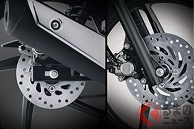 足回りにはフロントにテレスコピック式フォーク、リアにスイングアーム式のデュアルショックを採用し、乗り心地と安定性を両立。ブレーキはフロントがディスク、リアはモデルによってディスクまたはドラムとなっています。