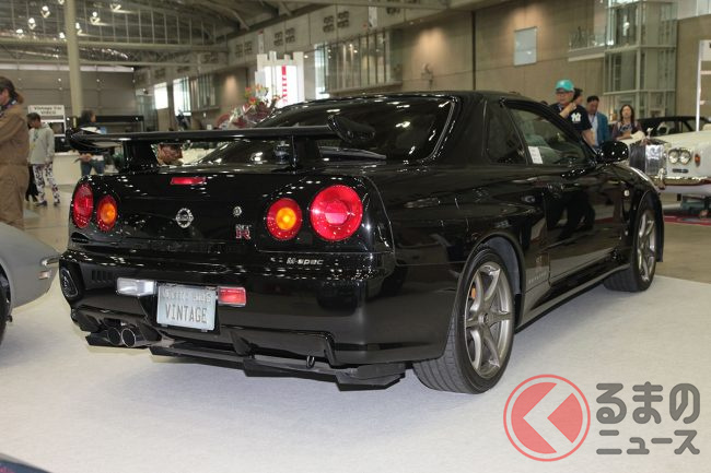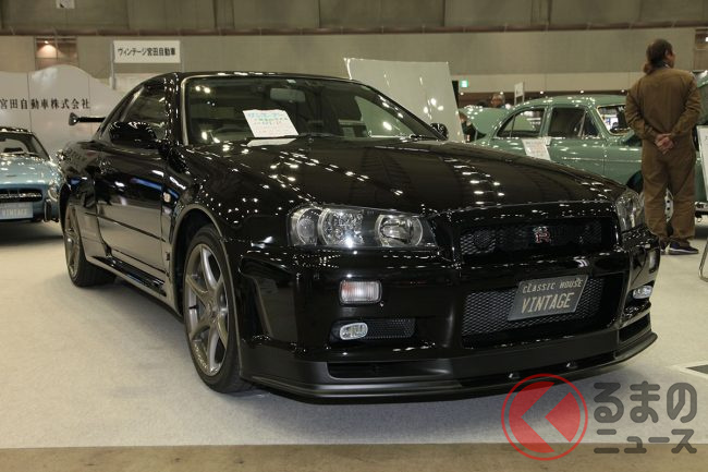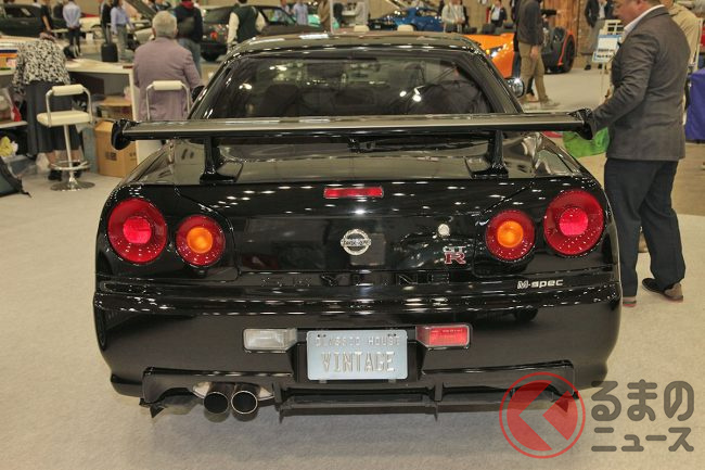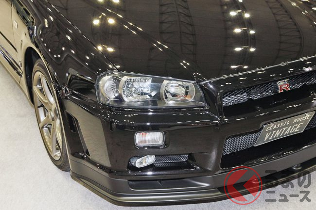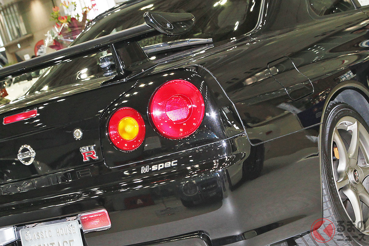 最終年式で台数も少ないBNR34型 日産「スカイラインGT-R Mスペック」は、会場で2770万円のプライスタグを掲げて販売されていました。この額の価値を探ってみることにしましょう。