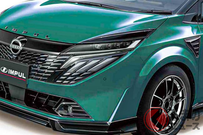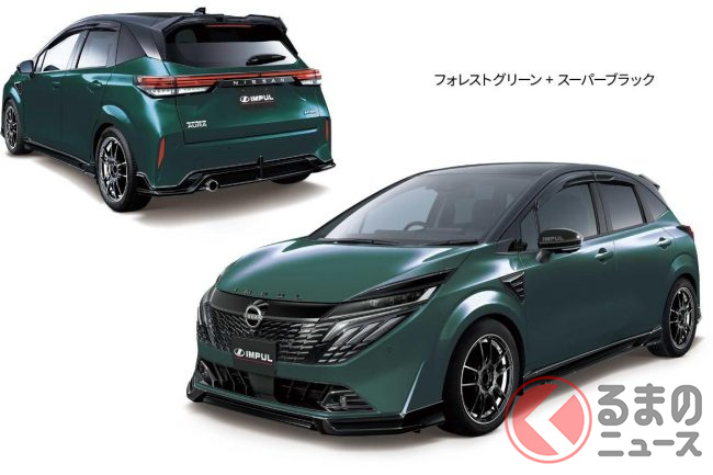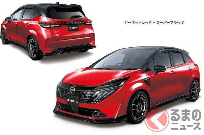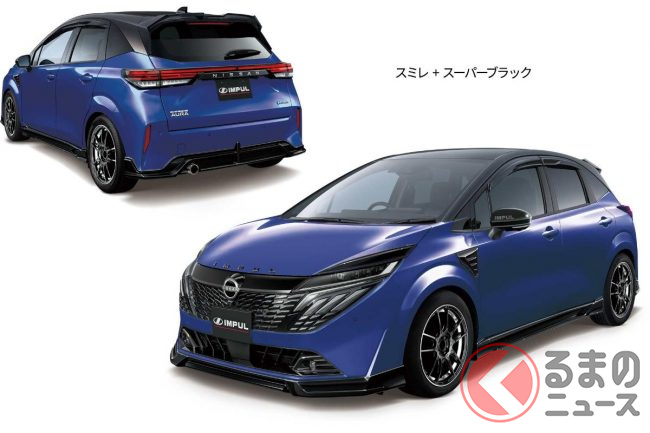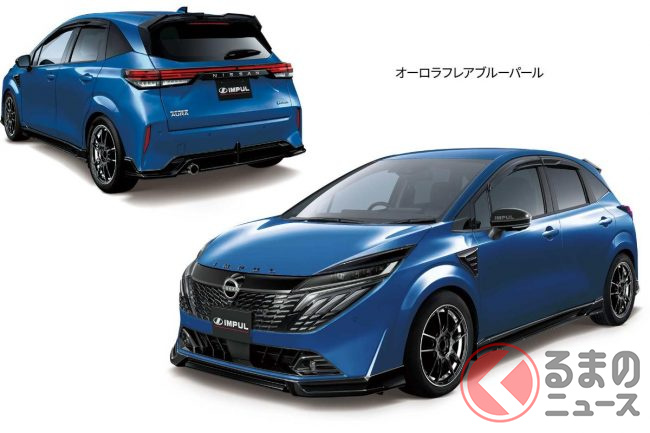 “超スポーティ”な日産「ノート」初公開! “迫力エアロ”の豪華な「オーラ」に大変身! 「ダイナミックな走り」予感させるインパル「オーラFE13エアロダイナミクスシステム」登場
