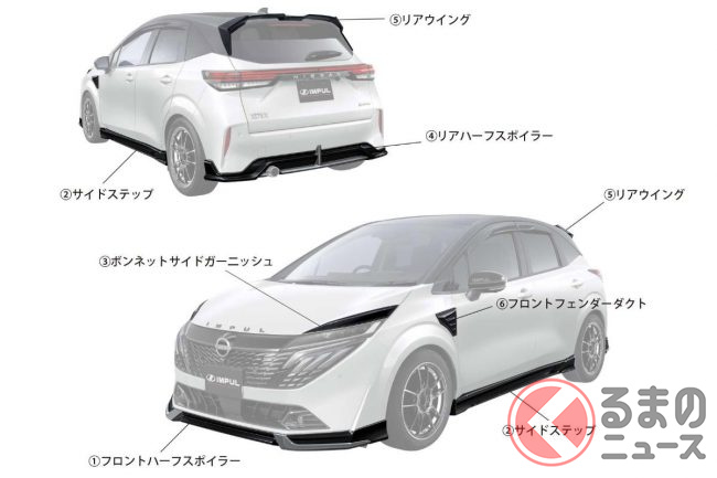 チューニングパーツメーカーのインパルは2025年4月7日、日産「ノートオーラ」向けの新たなエアロパーツ「オーラFE13エアロダイナミクスシステム」を初公開しました。
