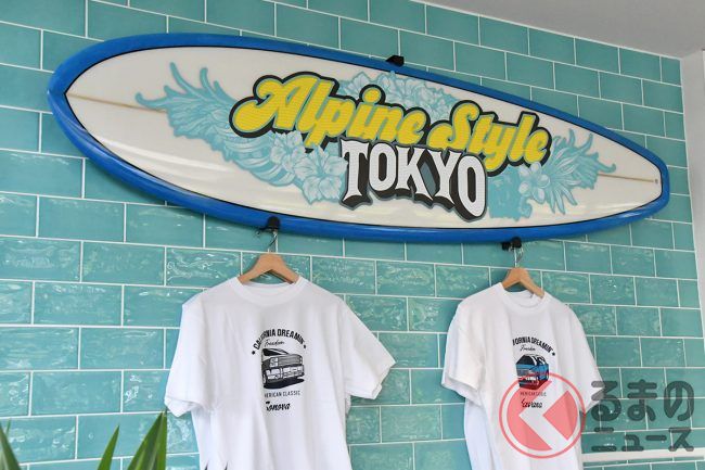 「ALPINE STYLE東京」は、アルパインスタイルオリジナルカスタマイズカー「Cal’s Motor(キャルズ モーター)」のカリフォルニア西海岸風の世界観を店舗で演出しています。