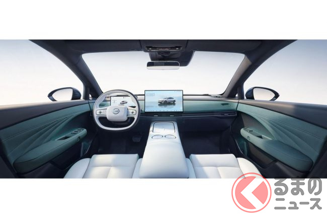 300万円台! 日産「新型4ドア“ハードトップ”」発表! 全長5m級の美麗ボディがカッコイイ! 冷蔵庫・テレビ・大型ソファも採用の“豪華内装”もイイ「N7」中国に登場