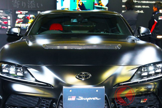 6速MTのみ! トヨタ新「2ドアスポーツカー」登場! 超パワフルな「直6ターボエンジン」搭載したストイック仕様! 鮮烈レッドの“豪華内装”も魅力の「スープラ A90 Final Edition」実車展示!