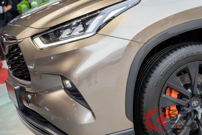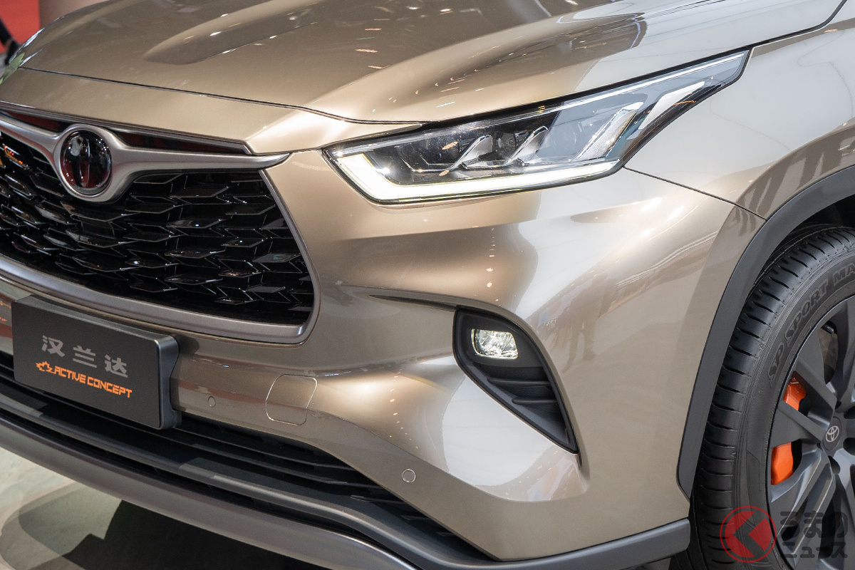 トヨタ新「SUV」公開! 専用マットホイール&鮮烈オレンジキャリパーがイイ! “全長5m級”の精悍ボディがカッコイイ「ハイランダー ACTIVE コンセプト」中国に登場