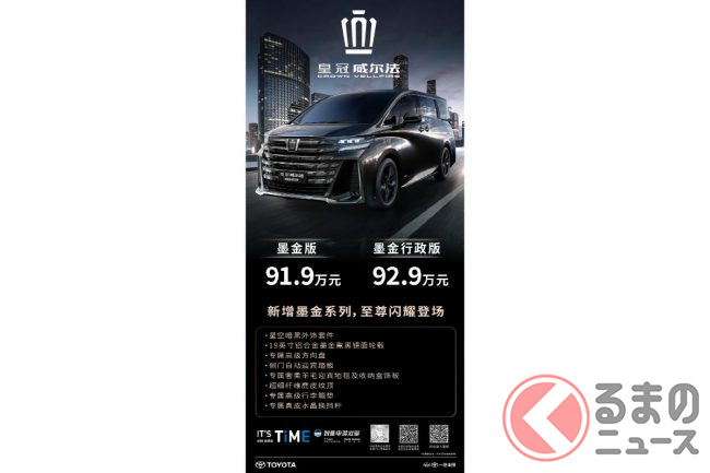 ちなみにクラウンヴェルファイアの価格は約90万元から93万元(約1800万円から1860万円)。