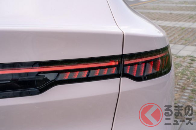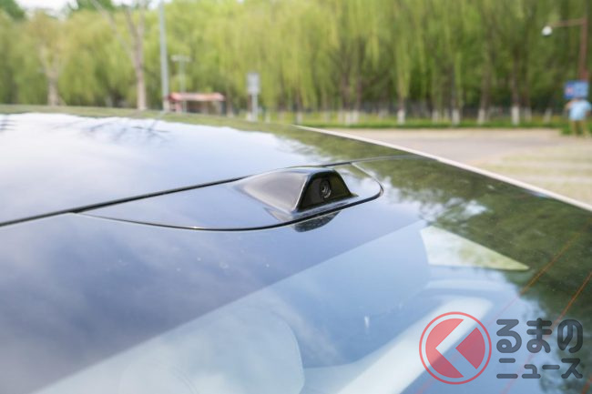 リアガラス上部には後方視界用カメラの突起がありますが、これも空力性能に影響を及ぼさない丸みを帯びた形状で埋め込まれているのが特徴的です。