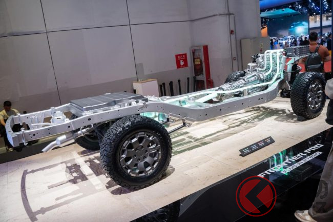 搭載するバッテリーの詳細は明らかとなっていませんが、ラダーフレーム後部、ベッドの下に配置する形式となります。