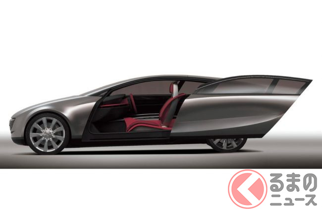 マツダ「“4人乗り”スポーツカー」公開! 画期的「ロータリー×ハイブリッド」&両側スライドドア採用! 全長4.6m級の”大人向けモデル“「マツダ先駆」登場
