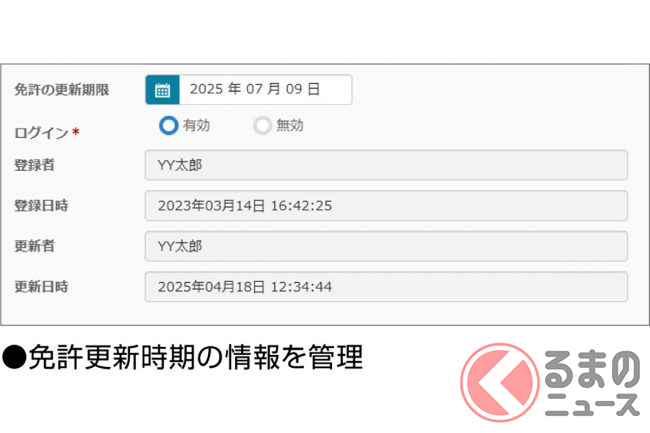 従業員の無免許運転など重大なリスクを未然に防ぐため、「うっかり失効」を防ぐ免許更新アラート機能を新たに搭載