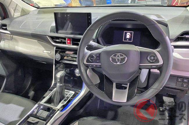 運転席周りのインテリアもライズにそっくりで、7インチのTFTインストルメントパネルや、9インチタッチスクリーンディスプレイ、ステアリングホイール等もどこかで見たことがあるデザインとなっています。
