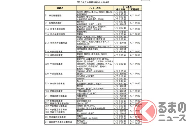 NEXCO中日本は2025年5月2日、4月に発生した大規模なETCシステム障害について、利用料金の請求をしないと発表しました。