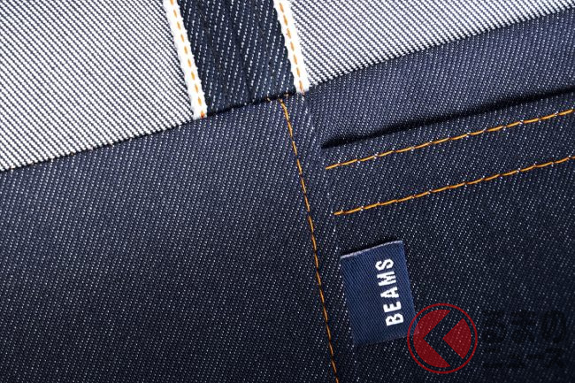 ビンテージデニムの特徴である「耳」を座面に施し、ビームスのピスネーム(タグ)や大小のポケットをあしらうことで、ジーンズのデザインを巧みに取り入れています。