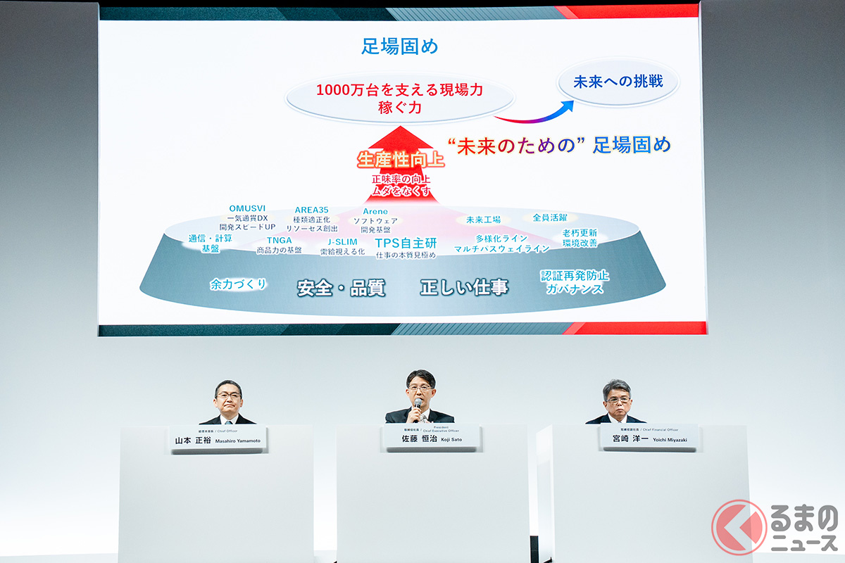 社長就任時に豊田氏からは「ずっとクルマをつくっておけばいいから」と言われた佐藤社長ですが、直近の出来事にジタバタすることなく、中長期的なビジョンのために「地に足をつけ、未来のために足場がためを進める」と全くブレはありません。