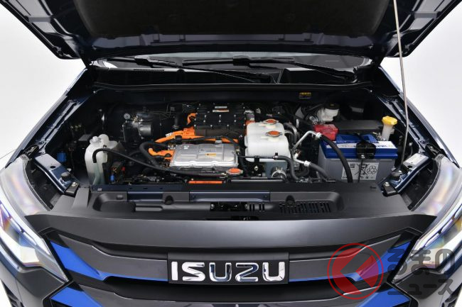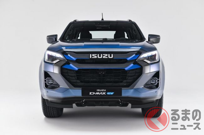 いすゞ“新型”「5人乗り4WD」世界初公開! 最低地上高210mm! “渡河深度”最大600mm! “ディーゼルエンジン車”の骨格を活かした「D-MAX EV」英国に登場