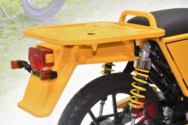 オリジナルのモトラは、角張ったパイプフレームに前後大型のキャリアを装備し、最大積載量こそ30kgに制限されていたものの、タフな見た目と利便性から多くのファンを獲得した原付一種バイクでした。
