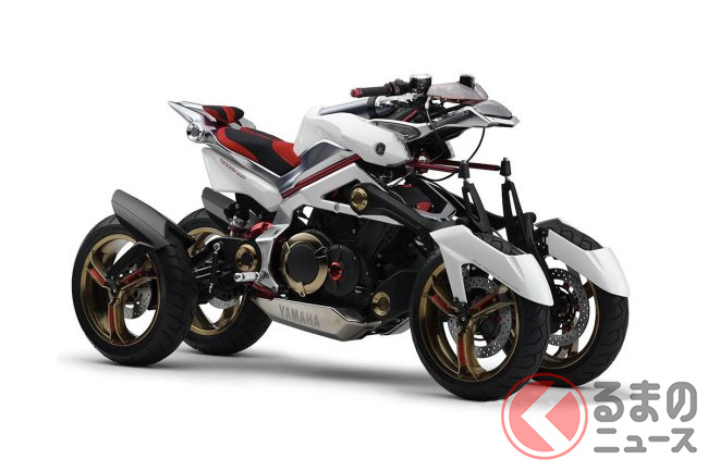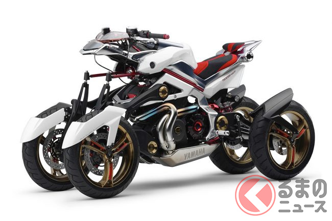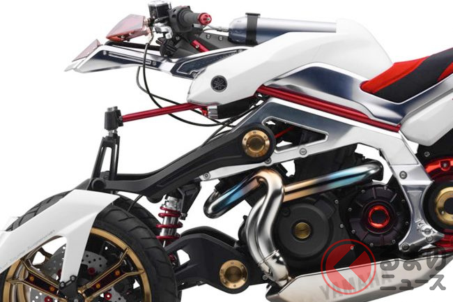 ヤマハの斬新“4輪車”「テッセラクト」に大反響! メカニカルデザインに「美しすぎる造形…」「超カッコイイ!」の声! “VツインHEV&独自技術LWM”採用の「マルチホイールビークル」が話題に