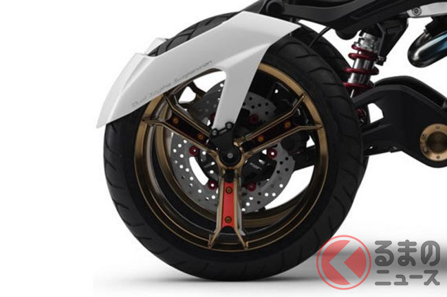 トリシティはヤマハが2014年から販売している前二輪・後一輪の三輪車で、テッセラクトで採用されたLMWを搭載した市販車第1弾でした。