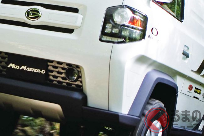 ダイハツ「“斬新”タフ仕様軽トラ」が凄かった! 全長3.4m級「“カクカク”デザイン」に画期的“荷台”でめちゃ便利! 5速MT搭載&300mm超え地上高実現の「マッドマスターC」とは
