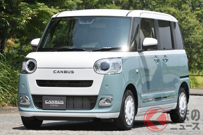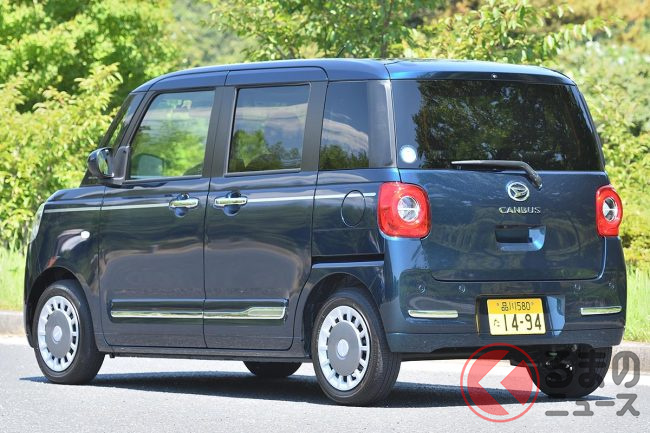 176万円! ダイハツ新「軽ワゴン」がスゴイ! 「リッター22キロ以上」の低燃費&「両側パワースライドドア」や“女性や若者に嬉しい”標準装備も! オシャレ内装も魅力の「ムーヴ キャンバス」最高級モデルとは?